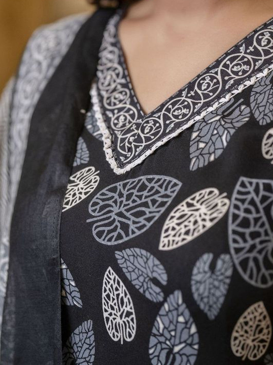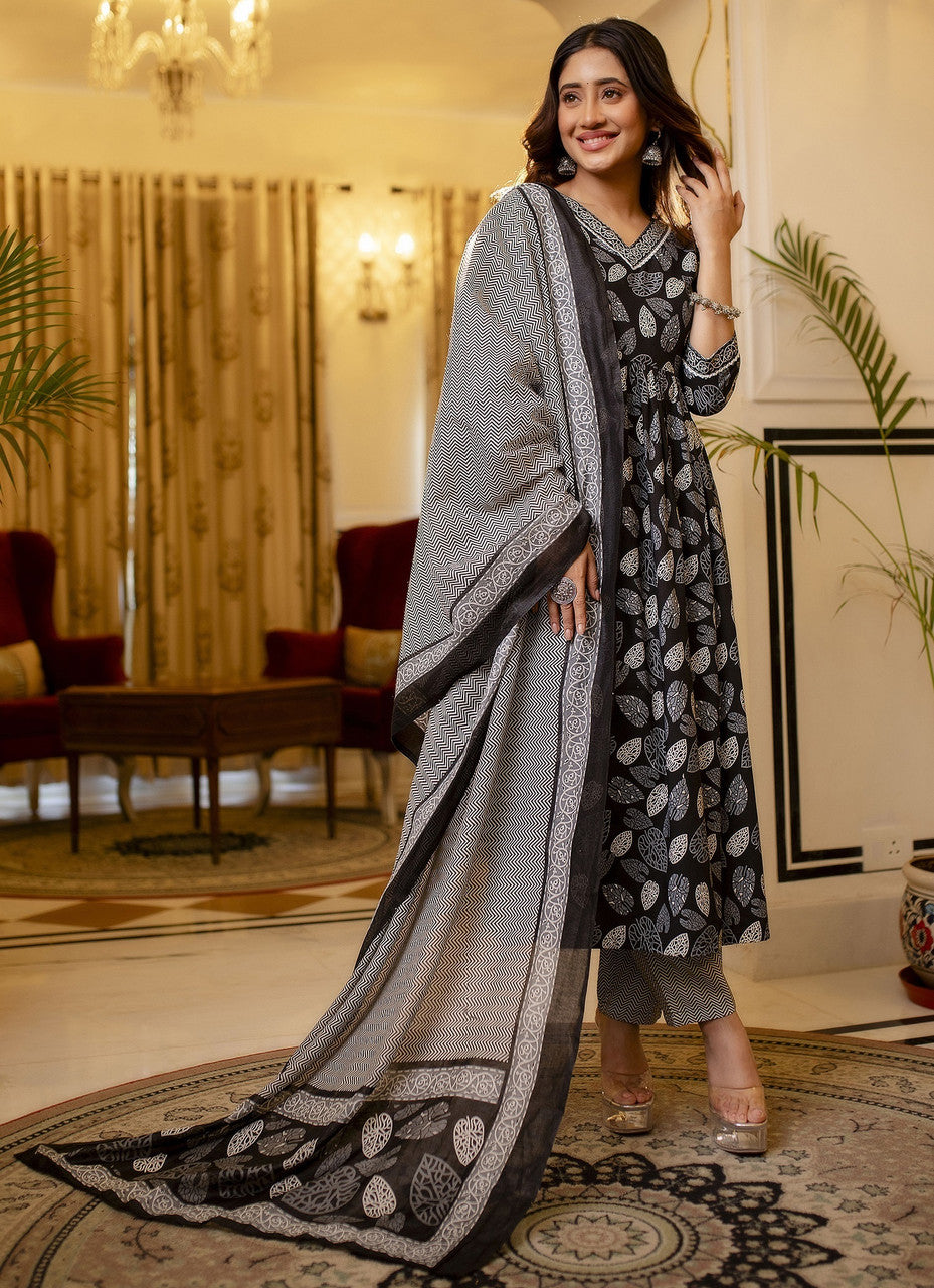 Black & White Printed Cotton Suit Set