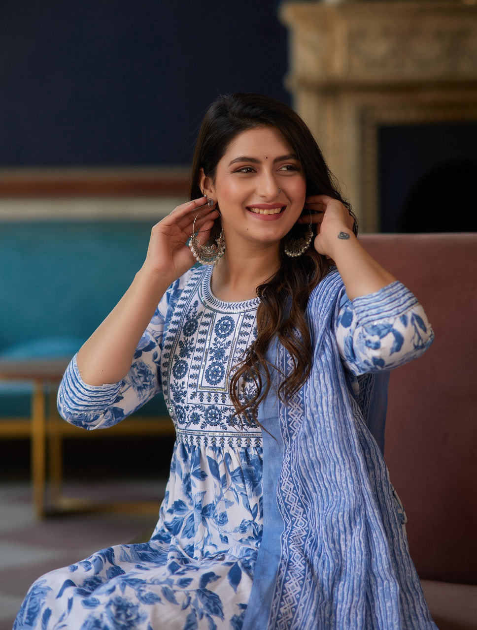 Blue Blossom Printed Suit Set